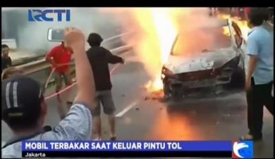 Mobil Terbakar di Pintu Keluar Tol Cawang