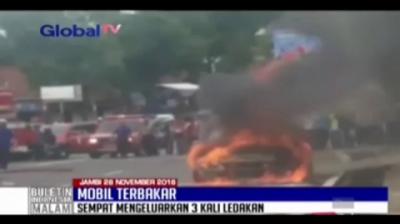 Sebuah Mobil Terbakar Akibat Konsleting Dibagian Mesin di Jambi