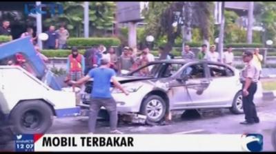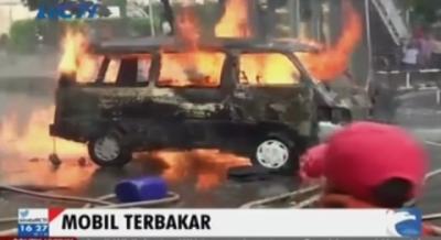 Mobil Sedan Terbakar di Depan Mal Atrium Senen