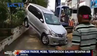 Mobil Terperosok Masuk Galian Resapan Air