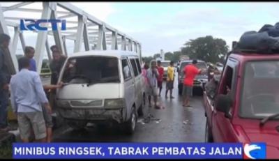 Ngantuk, Minibus Risngsek Tabrak Pembatas Jalan di Jalur Pantura Indramayu