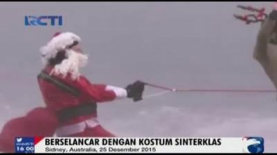 Pria Berkostum Sinterklas Bermain Ski Air