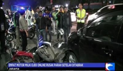 Minibus Tabrak 4 Motor Ojek Online di Tebet