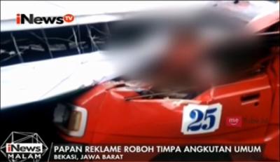 Papan Reklame Roboh Timpa Angkot