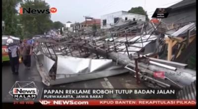 Papan Reklame Roboh Akibat Hujan Duras dan Angin Kencang