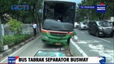 Bus Pengangkut Peserta Parade Budaya Tabrak Separator Busway