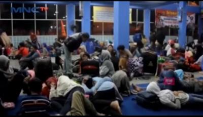 Ribuan Pemudik Tujuan Sumatera Beristirahat di Ruang Tunggu Pelabuhan Bakauheni