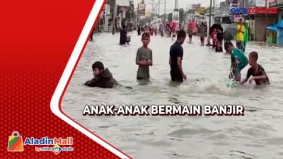 Kawasan Banjir di Pemalang Jadi Wahana Kolam Renang Dadakan Anak-anak