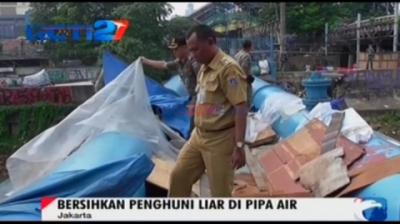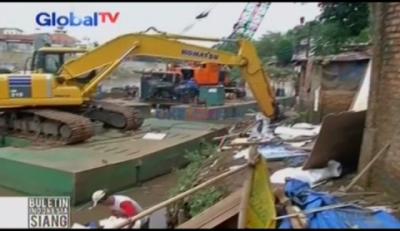 Belasan Gubug Liar di Kali Kanal Banjir Barat Dibongkar