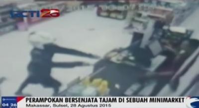 Perampokan Minimarket dengan Ketapel Terekam CCTV