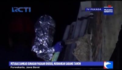 Petugas Damkar Musnakan Sarang Tawon di Rumah Warga