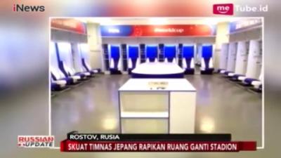Salut! Timnas Jepang Rapihkan Ruang Ganti Pemain Sebelum Angkat Koper dari Rusia