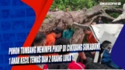 Pohon Tumbang Menimpa Pikup di Cikidang Sukabumi, 1 Anak Kecil Tewas dan 2 Orang Luka