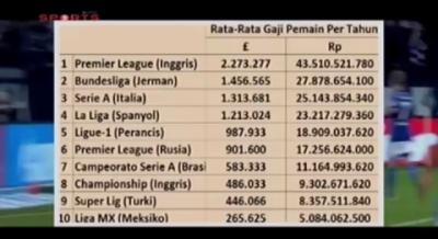 10 Liga dengan Gaji Tertinggi di Dunia