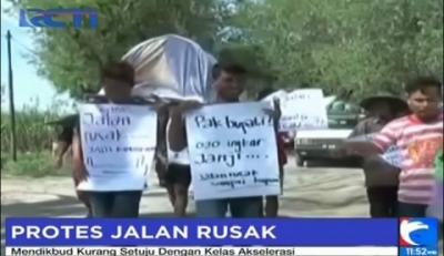 Protes Jalan Rusak, Emak-Emak di Lampung Tanam Padi di Tengah Jalan