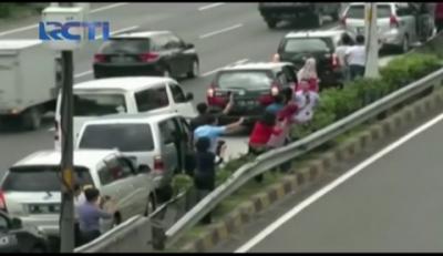 Warga Nekat Mengambil Foto Raja Salman dari Jalan Tol