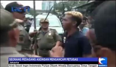 Pedagang Asongan Nekat Melawan Petugas dengan Pedang