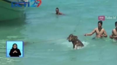 Tidak Ada Pelabuhan, Sapi Kurban Ini Terpaksa Harus Berenang
