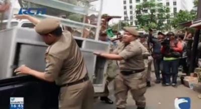 Atraksi Unjuk Kebal Satpol PP Dihadang Warga