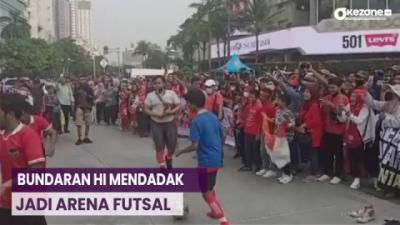 Sambut Timnas Indonesia, Bundaran HI Mendadak Jadi Arena Futsal Para Suporter Indonesia
