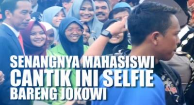 Senangnya Mahasiswi Cantik Ini Selfie Bareng Jokowi