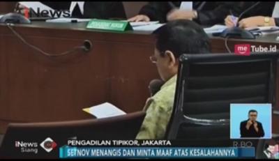 Setnov Menangis dan Minta Maaf di Sidang E-KTP