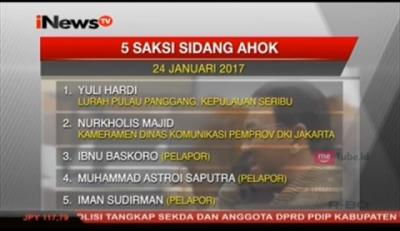 Pelapor Hadirkan 5 Saksi dalam Sidang Ahok