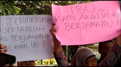 Jalani Pemeriksaan Perdana KPK, Siti Fadilah Disambut Para Pendukungnya
