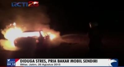 Diduga Stres, Pria Bakar Mobil Sendiri