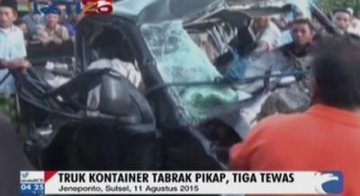 Truk Kontainer Tabrak Pikap, 3 Tewas