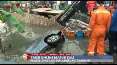 Taksi Online Nyebur ke Kali, Evakuasi Berlangsung Dramatis