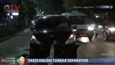 Hilang Kendali, Sebuah Taksi Online Tabrak Separator Busway