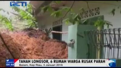Tanah Longsor di Batam, 6 Rumah Rusak Parah