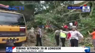 Tebing 20 Meter Longsor Menutup Akses Purwakarta - Padalarang