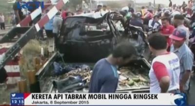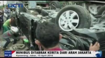 Sebuah Minibus Ringsek Tersambar KA di Karawang