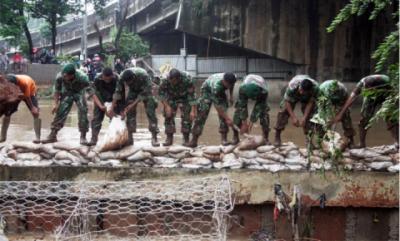 Ratusan TNI Perbaiki Tanggul Jalan Latuharhary