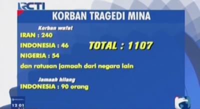Korban Wafat Tragedi Mina Total 1107 Orang