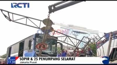TransJakarta Tabrak Pembatas Jalan di Gunung Sahari