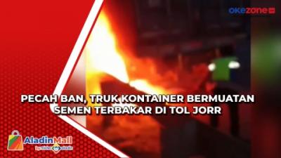 Pecah Ban, Truk Kontainer Bermuatan Semen Terbakar di Tol JORR