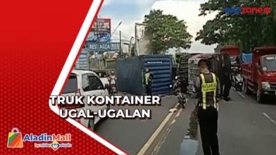 Truk Kontainer Alami Kecelakaan dan Terguling di Tol JORR Tanjung Priok