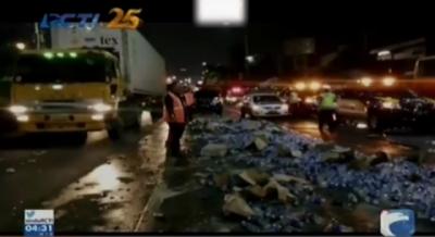Truk Semen Tercebur di Pelabuhan Merak, Banten