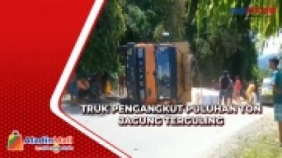 Truk Pengangkut Puluhan Ton Jagung Terguling di Jalan Trans Sulawesi