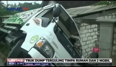 Mati Mesin di Tanjakan, Truk Muatan Batu Terguling Timpa Rumah dan 2 Mobil