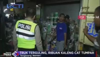 Truk Terguling di Jalan Raya Serang, Ribuan Kaleng Cat Tumpah