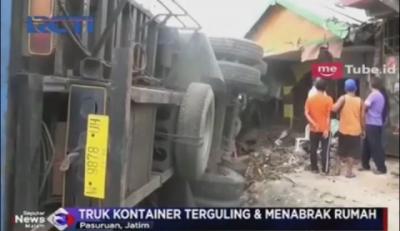Truk Kontainer Tabrak 2 Kendaraan dan Rumah di Pasuruan