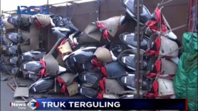 Truk Pengangkut Motor Terguling di Tol Kebon Jeruk