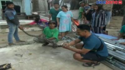 Ular Piton Masuk Rumah Warga di Palembang