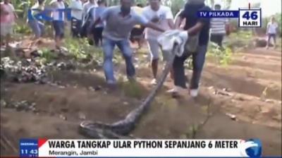 Warga Jambi Tangkap Ular Piton Sepanjang 6 Meter