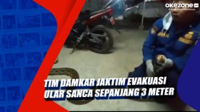 Tim Damkar Jaktim Evakuasi Ular Sanca Sepanjang 3 Meter