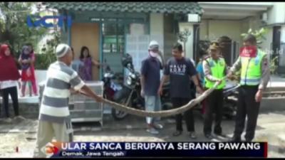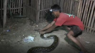 Warga Tangkap Ular Sanca Pemakan Angsa